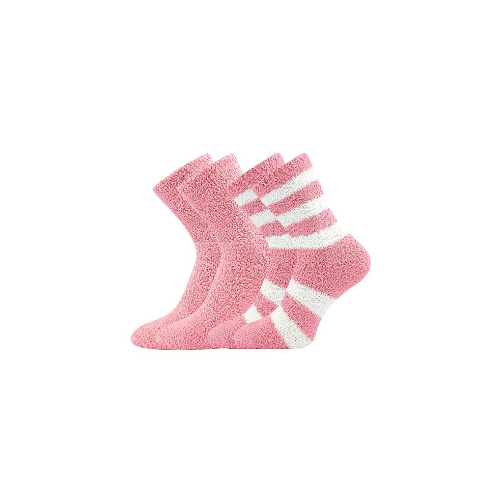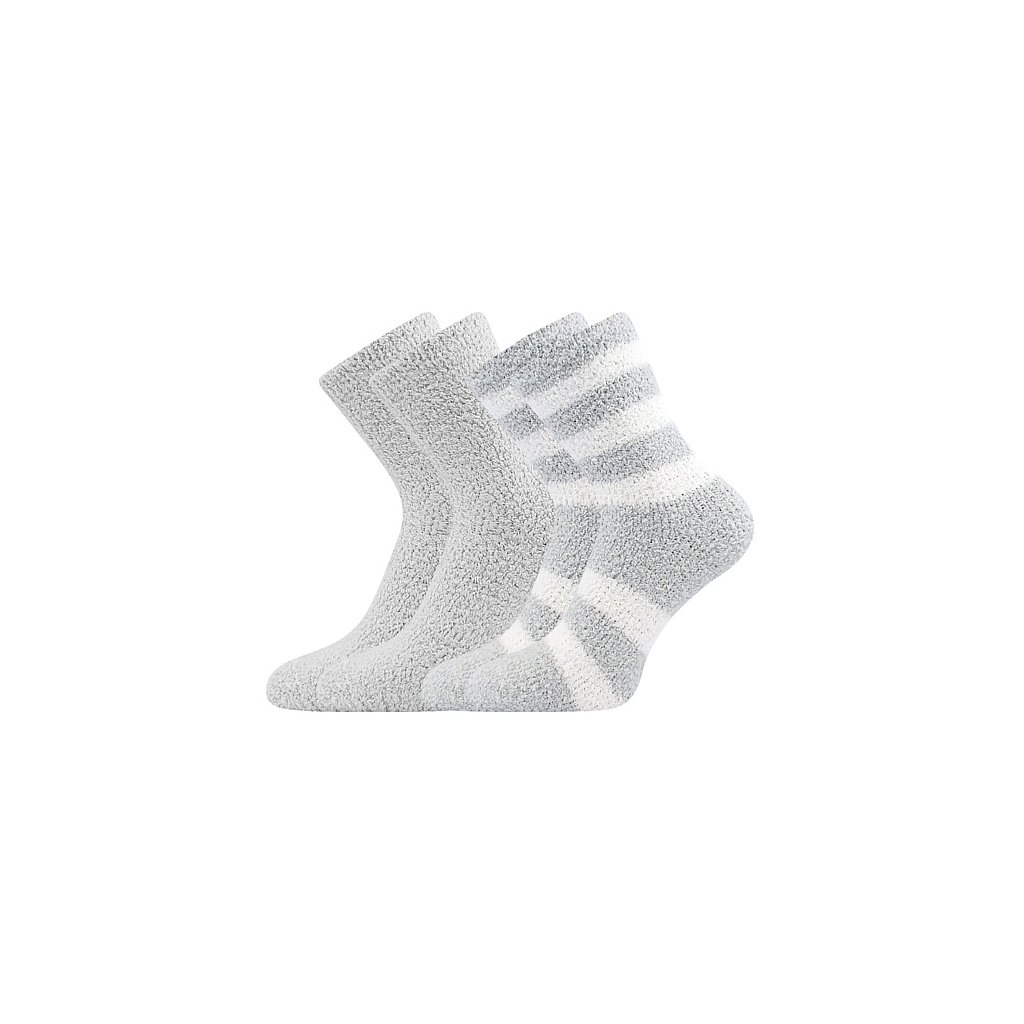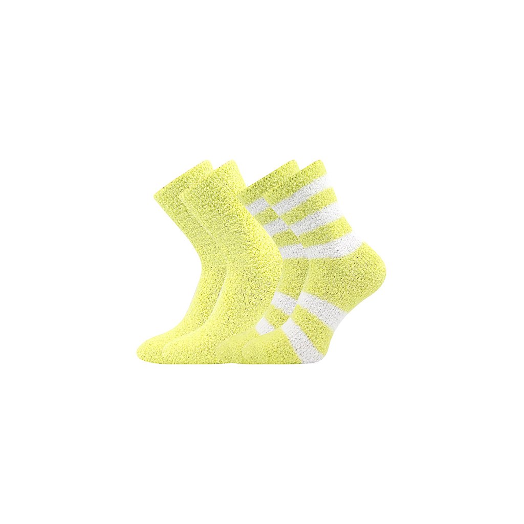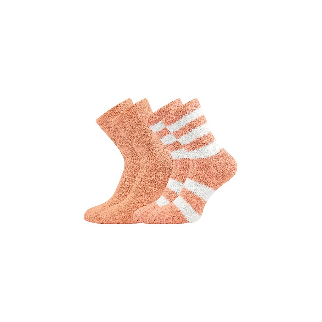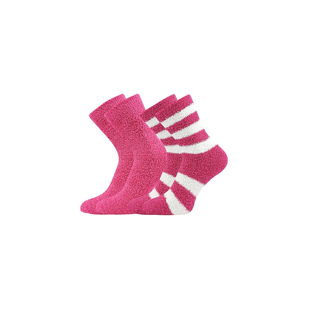 Dámské ponožky Boma® SVĚTLANA z žinylkové příze jsou tak měkké a hebké, že se do nich zamilujete na první pohlazení. Jsou velmi jemné a příjemné na dotyk, jemný lem ponožek nohy nestahuje a neškrtí. Barevné ponožky jsou perfektní na domácí lenošení na pohovce nebo při sledování televize. Vzít si je můžete i do postele. Prodáváme ve výhodné sadě barevně sladěných 2 párů v jednobarevné a pruhované kombinaci.