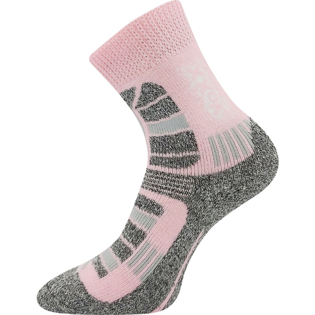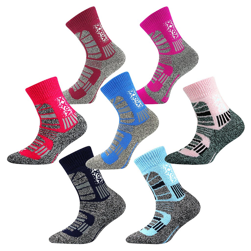 Dětské funkční termo ponožky VoXX® TRACTION jsou tou ideální volbou na výlety do přírody, treking nebo horskou turistiku. Nohy jsou neustále v pohodlí i při náročném a dlouhotrvajícím pohybu. Materiály vlna a Filactive® spojující přednosti bavlny a odolnost polypropylenu Meraklon, mají výborné termoizolační schopnosti, odvádí dobře vlhkost a odolávají opotřebení. Chodidlo je vyztužené, lem je jemný a nestahující, konstrukce dobře odvádí pot od pokožky. Froté ponožky pro chladnější období jsou v teplotní třídě C od -20°C do +5°C.