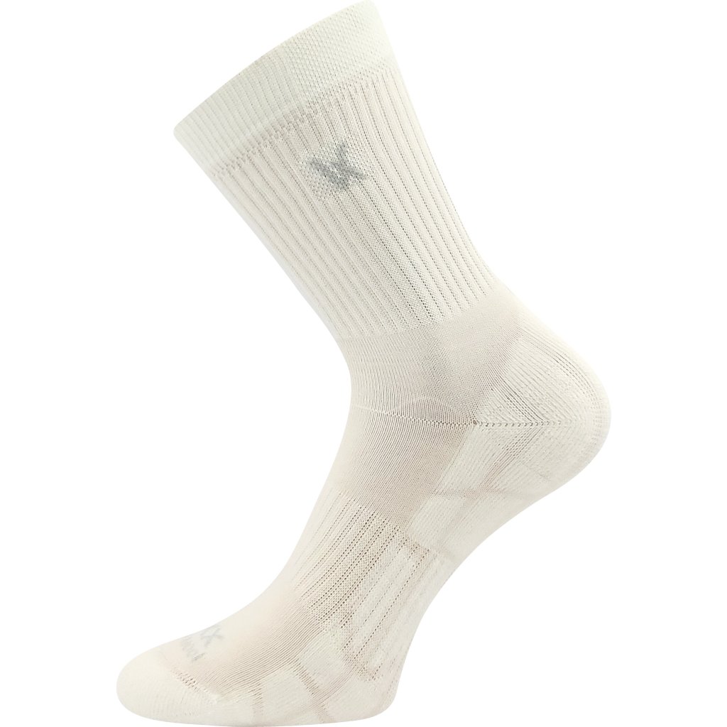 Sportovní ponožky VoXX® TWARIX mají extra volný nestahující a neškrtící lem. Jsou tak ideální pro celodenní nošení. Díky vysokému podílu merino vlny, která je přirozeně antibakteriální a materiálu silproX® s ionty stříbra žádný zápach neucítíte. Pro maximální pohodlí mají zesílené vzorované masážní chodidlo s froté zónami, špice je uzavřena řetízkováním, takže nikde netlačí. Prodyšná elastická zóna na nártu zabraňuje přetočení ponožky. Vlněné unisex ponožky jsou teplotní třída B-C.