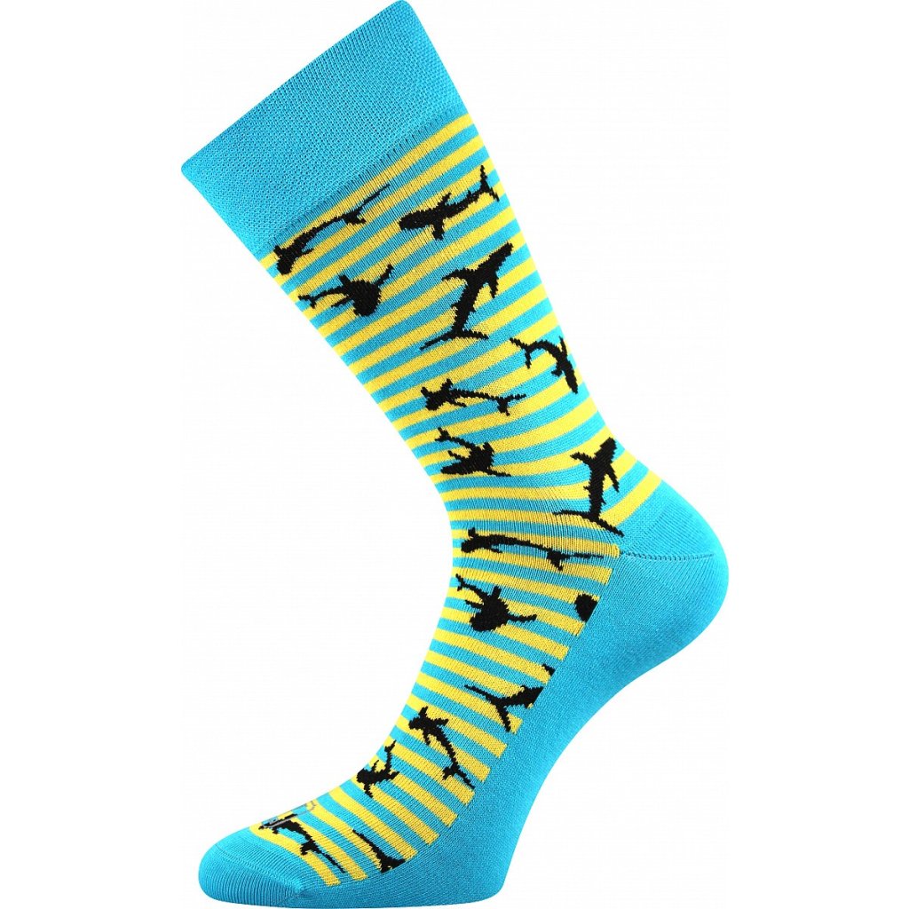 Unisex klasické "trendy" ponožky LONKA® WEAREL 011 jsou oblíbené ponožky v extra kvalitě s barevnými obrázky. Hravý design oživí váš outfit, ať už nosíte oblek nebo džíny. Slabé ponožky jsou vyrobené z vyššího podílu bavlny doplněného o elastan, takže ponožka je příjemná na pokožce ale zároveň je pružná a dobře si drží tvar. Módní ponožky jsou velmi jemné a hladké, řetízkovaná špice nikde na prstech netlačí a nevznikají tak otlaky nebo puchýře. Společenské ponožky mají jemný, nestahující lem a dostupné jsou ve výhodném balení 3 párů ponožek. Dostupné i v nadměrné velikosti.