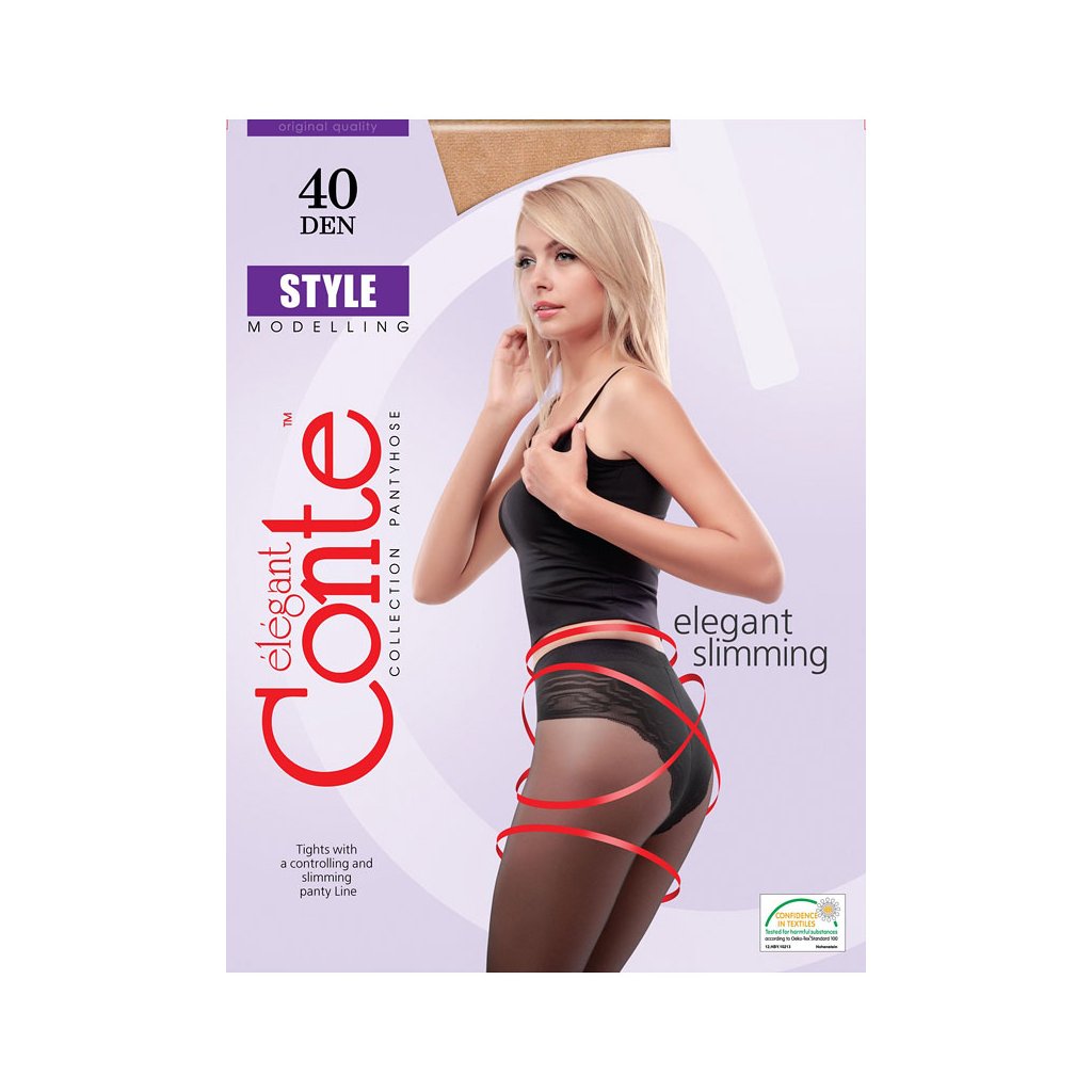 STYLE. 40 DEN. Zeštíhlující. Tenké, elastické, s efektem krajkových kalhotek. Zesílená špička. 86% Polyamid + 14% Elastan 428 tělová 901 černá S,M,LDoplňkové parametry