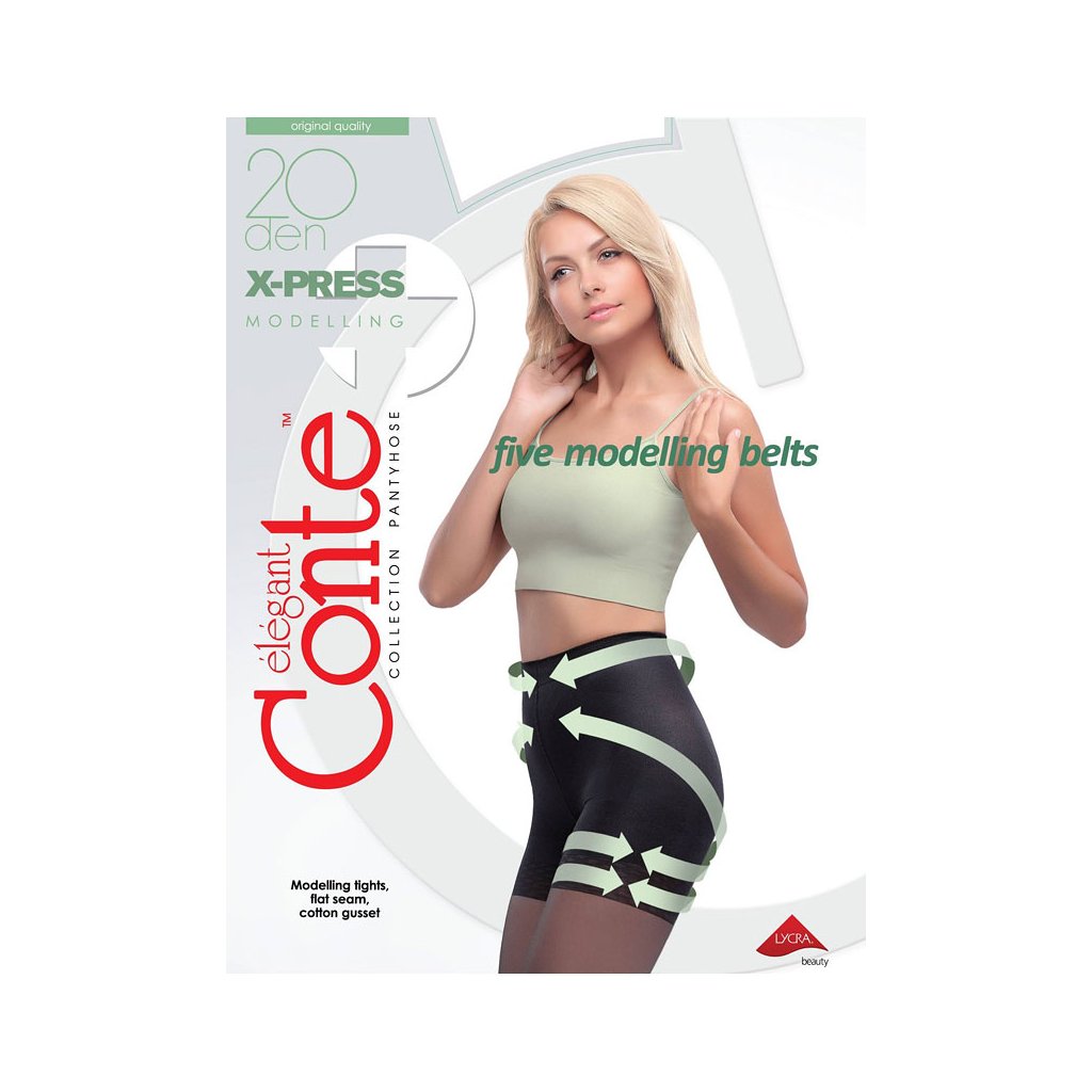 X-PRESS. 20 DEN. Zeštíhlující efekt - 7 tvarujícíh zón. Pevné, elastické. Zesílená špička. 77% Polyamid + 23% Elastan 428 tělová 901 černá S,M,L,XLDoplňkové parametry
