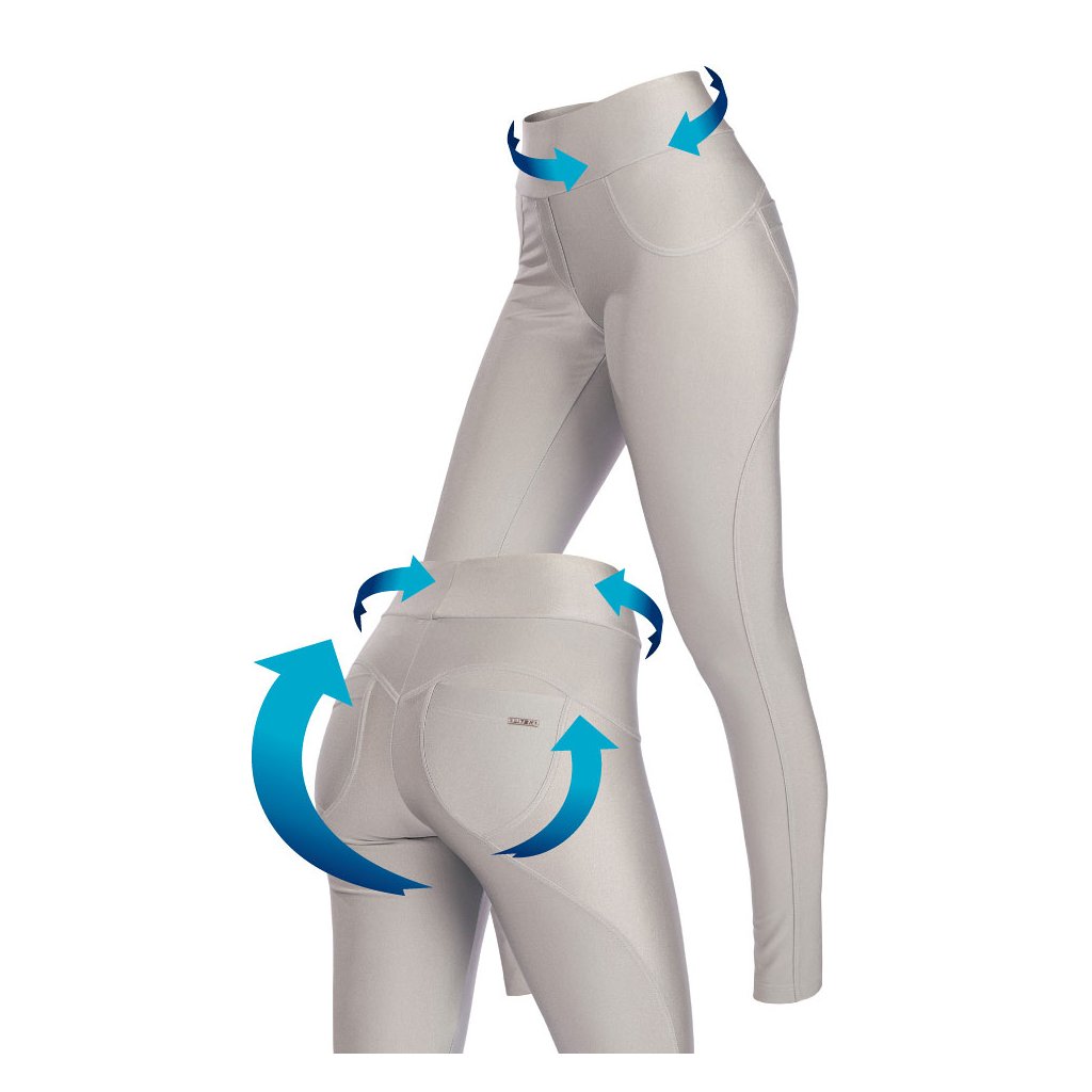 Dámské dlouhé propracované legíny se širokým pasem a kapsami na zadním díle. Materiál má lesk, je pružný, nemačká se a velmi rychle schne. Víceúčelové legíny. 80% Polyamid + 20% Elastan 121 stříbrná S, M, LDoplňkové parametry