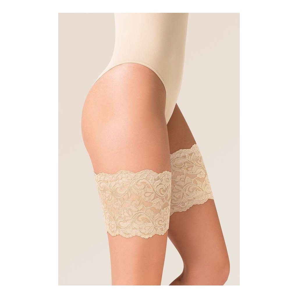 Samodržící pásky na stehna z krásné krajky smetanové barvy se silikonovým páskem.Doplňkové parametry