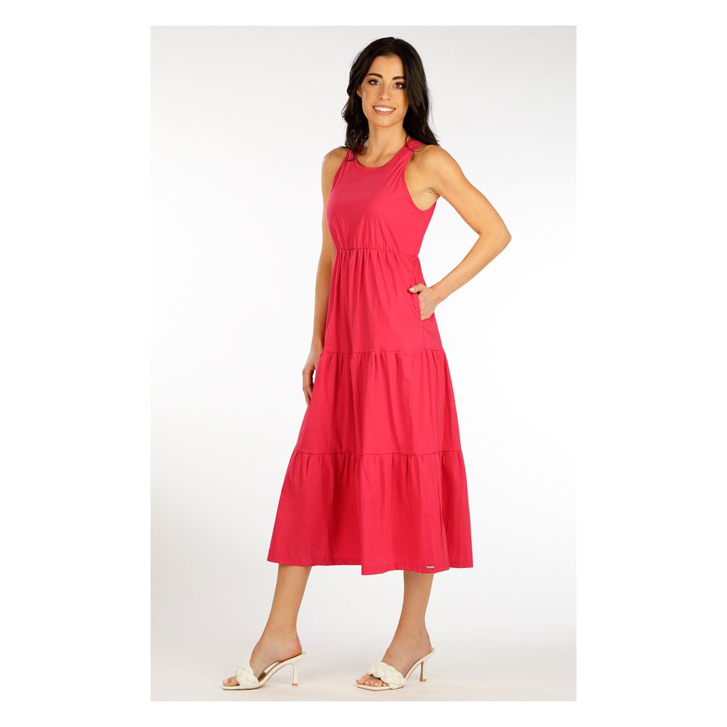 Dámské volnočasové šaty volného střihu s kanýry a bočními kapsami. Šaty mají kulatý výstřih a více prokrojené průramky pro volnost pohybu. Materiál s vysokým podílem bavlny, která představuje záruku prodyšnosti a vysoce komfortního pocitu. Lehký a pružný materiál. Délka šatů cca 120cm. 70% Bavlna + 26% Polyamid + 4% Elastan 320 tmavě růžová S, M, L, XLDiskuze