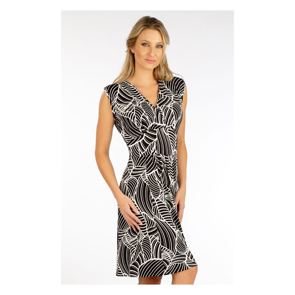 Elegantní dámské šaty s hlubokým výstřihem a tvarovaným pružným páskem pod prsy pro zvýraznění ženské siluety. Spodní díl šatů nařasený pro pohodlné nošení. Viskózový úplet s příměsí elastanu je příjemně měkký, pružný a při nošení velice komfortní. Abstraktní černobílý tisk je nadčasový a lehce kombinovatelný, který stylově osvěží Váš letní šatník. Délka šatů cca 90cm. 95% Viskóza + 5% Elastan černobílý tisk S, M, L, XLDiskuze