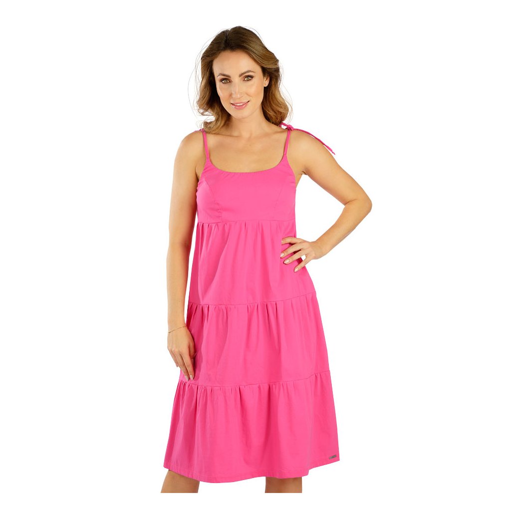 Působivé romantické šaty volného střihu s kanýry a ramínky na zavazování. Materiálové složení je tvořeno vysokým podílem bavlny, která v průběhu nošení představuje záruku prodyšnosti a vysoce komfortního pocitu. Velmi nápaditý kousek, který stylově osvěží Váš letní šatník. Délka šatů cca 97 cm. 70% Bavlna + 26% Polyamid + 4% Elastan 303 růžová S, M, LDoplňkové parametry