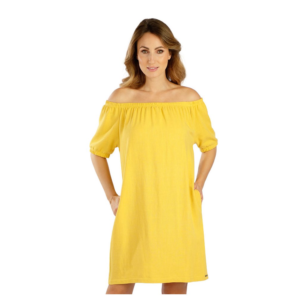 Dámské volnočasové šaty volného střihu s bočními kapsami. Šaty je možné nosit s lodičkovým výstřihem nebo s odhalenými rameny. Materiálové složení zaručuje dokonalou prodyšnost, měkkost a příjemný pocit při nošení. Velmi praktický a pohodlný kousek v moderním střihu, který skvěle doladí Váš outfit. Délka šatů cca 85cm. 70% Viskóza + 30% Len 106 žlutá S, M, L, XLDoplňkové parametry