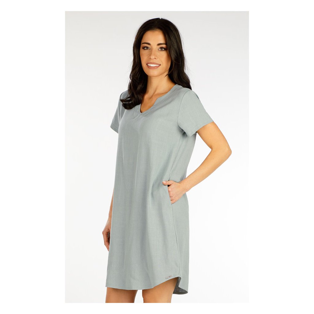 Šaty volného střihu s tvarovaným výstřihem a bočními kapsami. Materiálové složení zaručuje dokonalou prodyšnost, měkkost a příjemný pocit při nošení. Velmi praktický a pohodlný kousek v moderním střihu, který skvěle doladí Váš outfit. Délka šatů cca 90 cm. 70% Viskóza + 30% Len 612 světle mentolová S, M, L, XLDoplňkové parametry