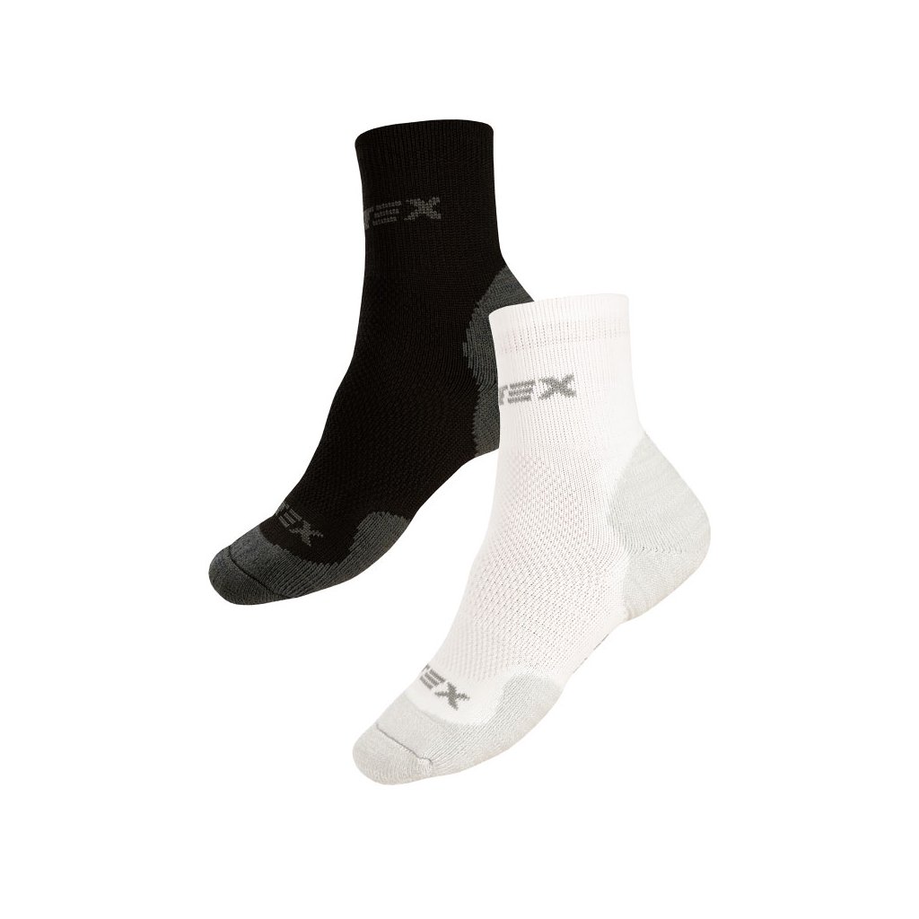 Sportovní funkční ponožky pro indoorové i outdoorové využití. Froté chodidlo pro příjemné nošení a odtlumení nárazů při sportu. Komfortní lem. 60 % Bavlna + 28 % Polypropylen + 8 % Polyamid+ 4 % Elastan. 100 bílá + šedá 901 černá + šedá 24-25, 26-27, 28-29, 30-31Doplňkové parametry