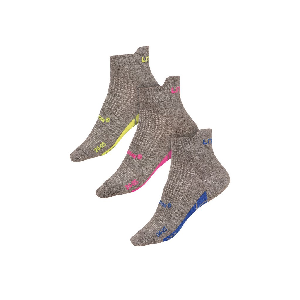 Funkční ponožky z materiálu CoolMax - zajišťuje rychlý odvod potu a reguluje tělesnou teplotu. Vlákno Lycra zajistí perfektní pružnost. V zadní části zvýšený lem, pro ochranu achilovky. Air ventilační panel v oblasti nártu. Elastická bandáž v chodidle. Komfortní protiskluzový lem. Vhodné pro aktivní sporty, zvláště pro běh. 70% Polyester CoolMax + 15% Polypropylen + 10% Polyamid + 5% Elastan/ Lycra 311 tmavě šedé melé + reflexní růžová 602 tmavě šedé melé + reflexní zelená 507 tmavě šedé melé + modrá 24-25, 26-27, 28-29, 30-31Doplňkové parametry