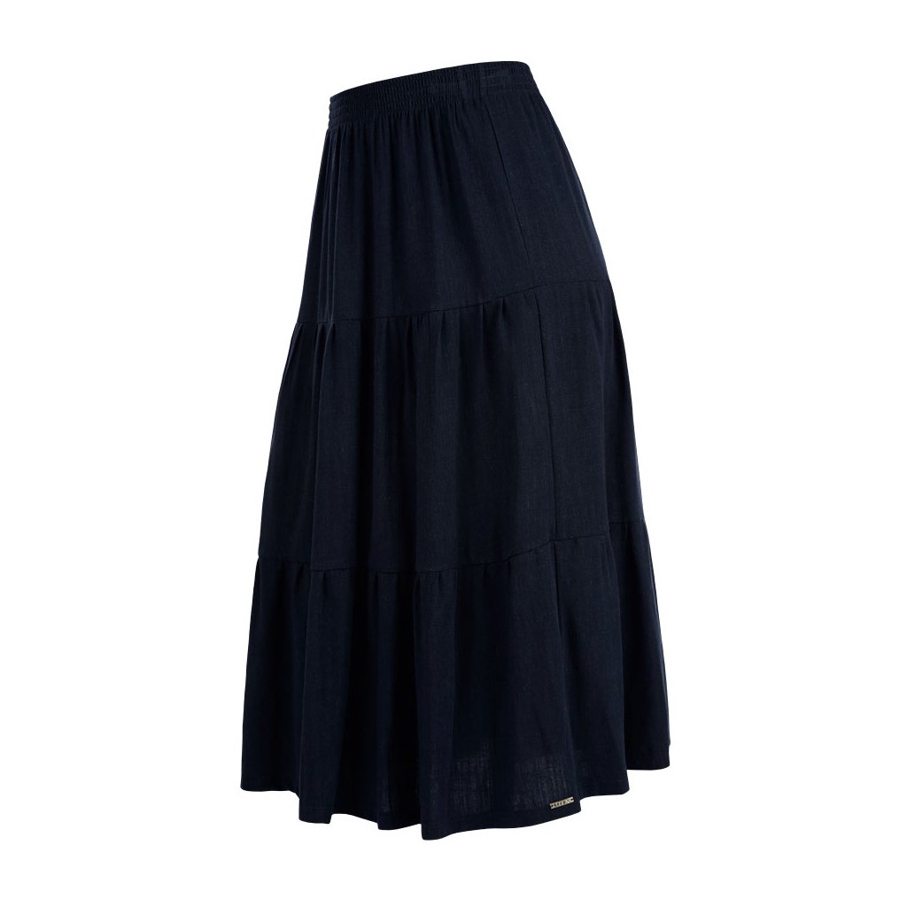 Elegantní dámská sukně s kanýry a délkou nad kotníky. Pružný pas do gumy. Materiálové složení zaručuje dokonalou prodyšnost, měkkost a příjemný pocit při nošení. Velmi praktický a pohodlný kousek v moderním střihu, který skvěle doladí Váš outfit. Délka sukně cca 85cm. 70% Viskóza + 30% Len 515 noční modrá S, M, L, XLDoplňkové parametry
