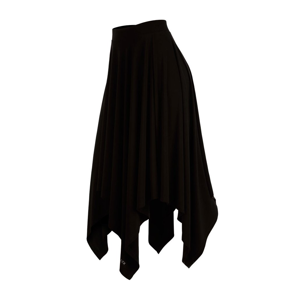 Pružný pas s gumou a asymetricky řešená délka sukně. Velmi splývavý a pružný nemačkavý materiál Vám zajistí maximálně příjemný pocit při nošení. Možné nosit i jako plážovou tuniku. Délka sukně v kratší části cca 60 cm. 95% Polyester + 5% Elastan 901 černá S, M, LDoplňkové parametry
