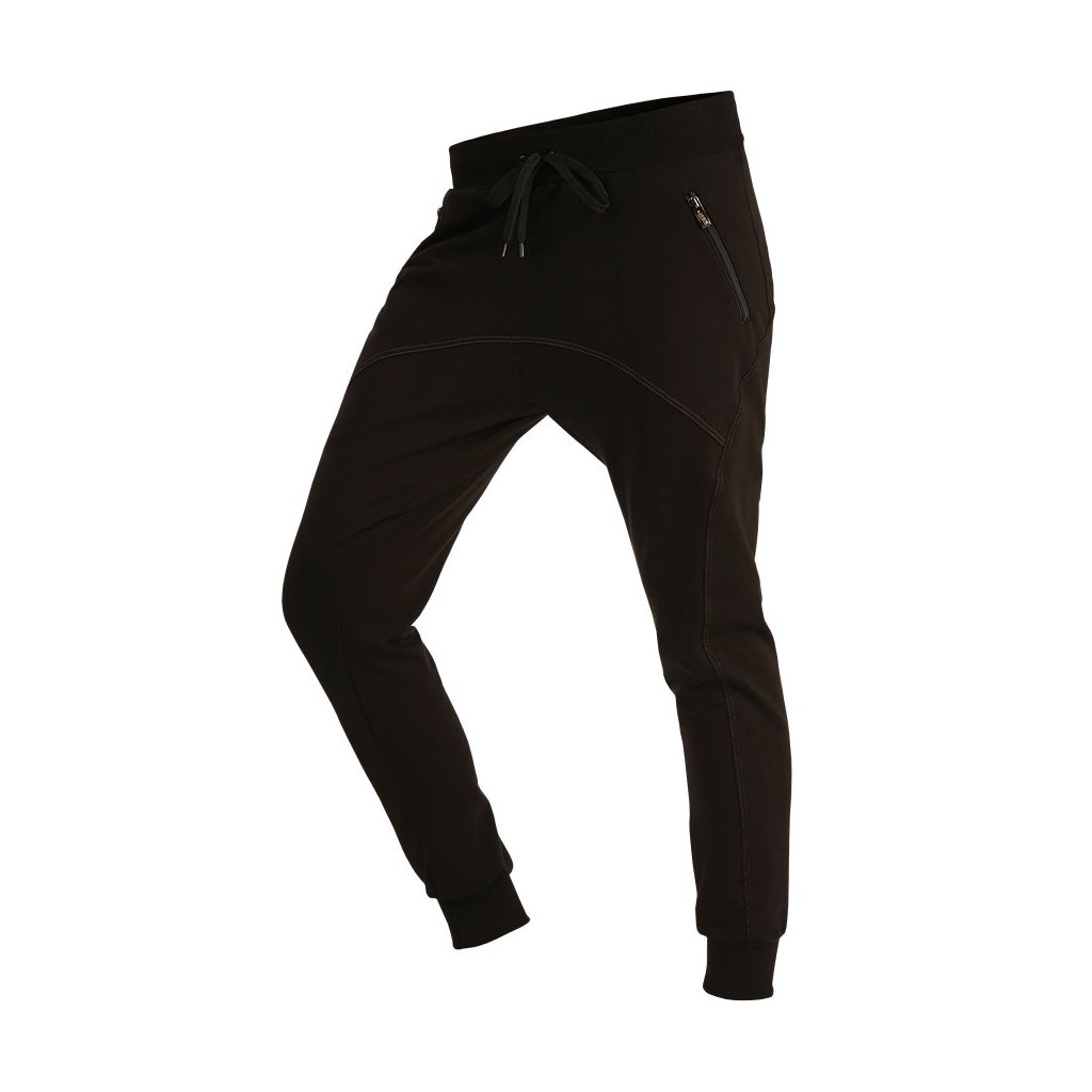 Bokové. V pase pružný žebrový lem s gumou a tkanicí na stažení. Kapsy se zipy. Nohavice do žebrového lemu. Ozdobné prošití. 70% Bavlna HEAVY + 22% Polyester + 8% Elastan 901 černá S, M, L, XLDoplňkové parametry