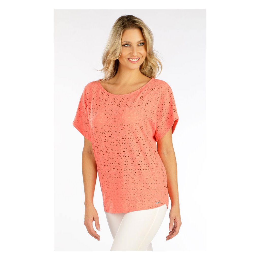 Dámské triko s kulatým výstřihem a krátkým rukávem. Volný střih a vzdušný děrovaný materiál zaručuje dokonalou prodyšnost, maximální komfort při nošení a jednoduchou údržbu. Výborně kombinovatelný a praktický kousek, který skvěle doladí Váš každodenní outfit. 95% Polyester + 5% Elastan 304 lososová S, M, L, XLDoplňkové parametry