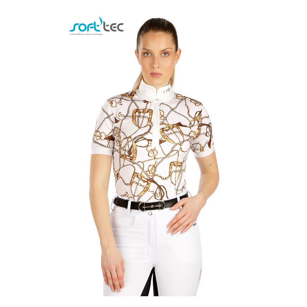 Dámské závodní triko přiléhavého střihu. Stojáček je ozdoben knoflíkem "Crystals from Swarovski". Léga se skrytým zapínáním na knoflíky. Vysoce kvalitní funkční materiál zaručuje vysoký komfort při celodenním nošení. Materiál je velice lehký, prodyšný, pružný a rychleschnoucí. Stylový potisk dělá toto triko originální. 94% PES coolmax all season soft'tec + 6% Elastan/Lycra tisk + bílá S, MDoplňkové parametry