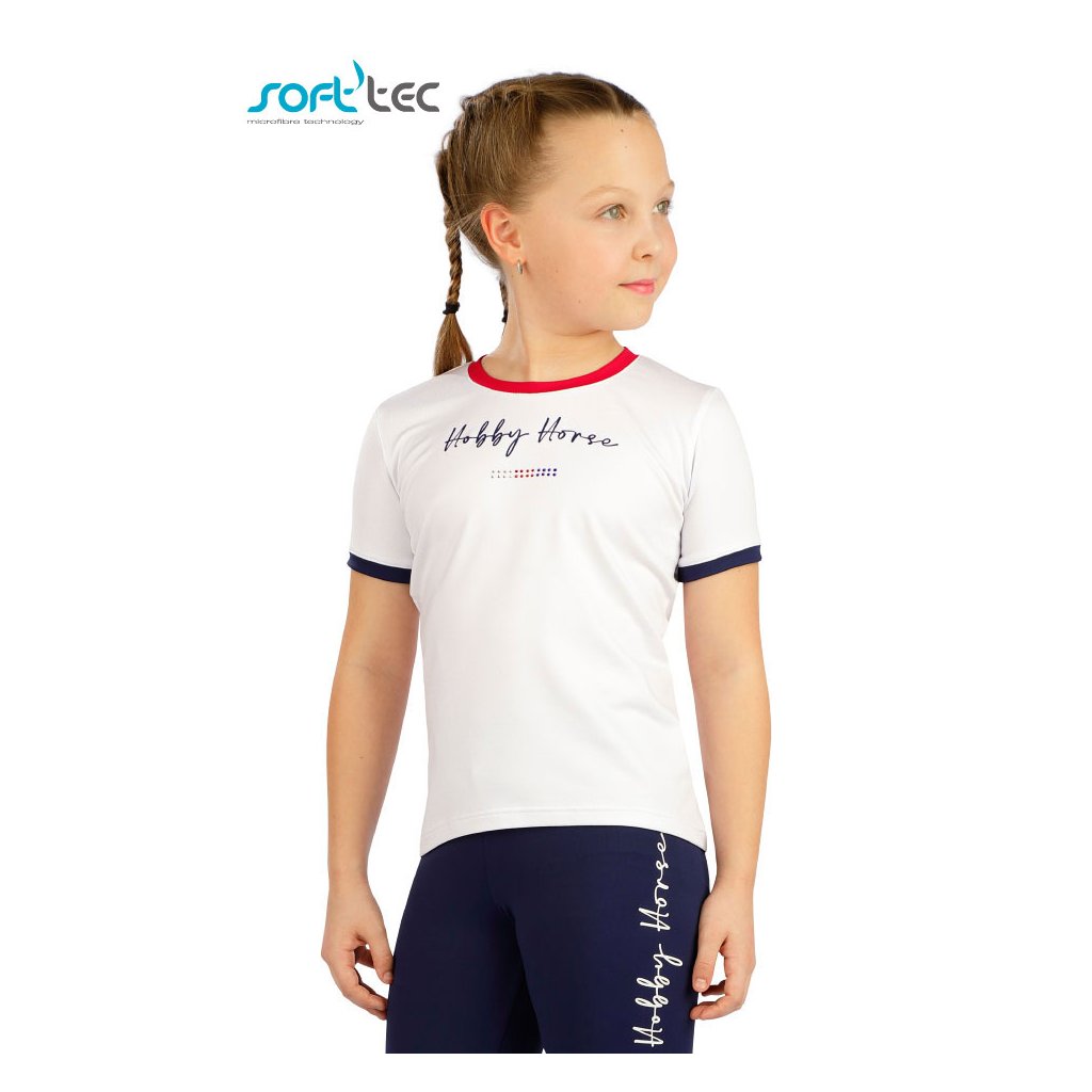 Pohodlný střih s delším zadním dílem a kulatým výstřihem. Barevný potisk koně v reprezentačních barvách. Nápis Hobby Horse s kamínkovou trikolórou. Vysoce kvalitní funkční materiál zaručuje vysoký komfort při celodenním nošení. Materiál je velice lehký, prodyšný, pružný a rychleschnoucí. Vhodné pro aktivní sporty. 94% PES coolmax all season soft'tec + 6% Elastan/Lycra 100 bílá 134, 140, 146Doplňkové parametry