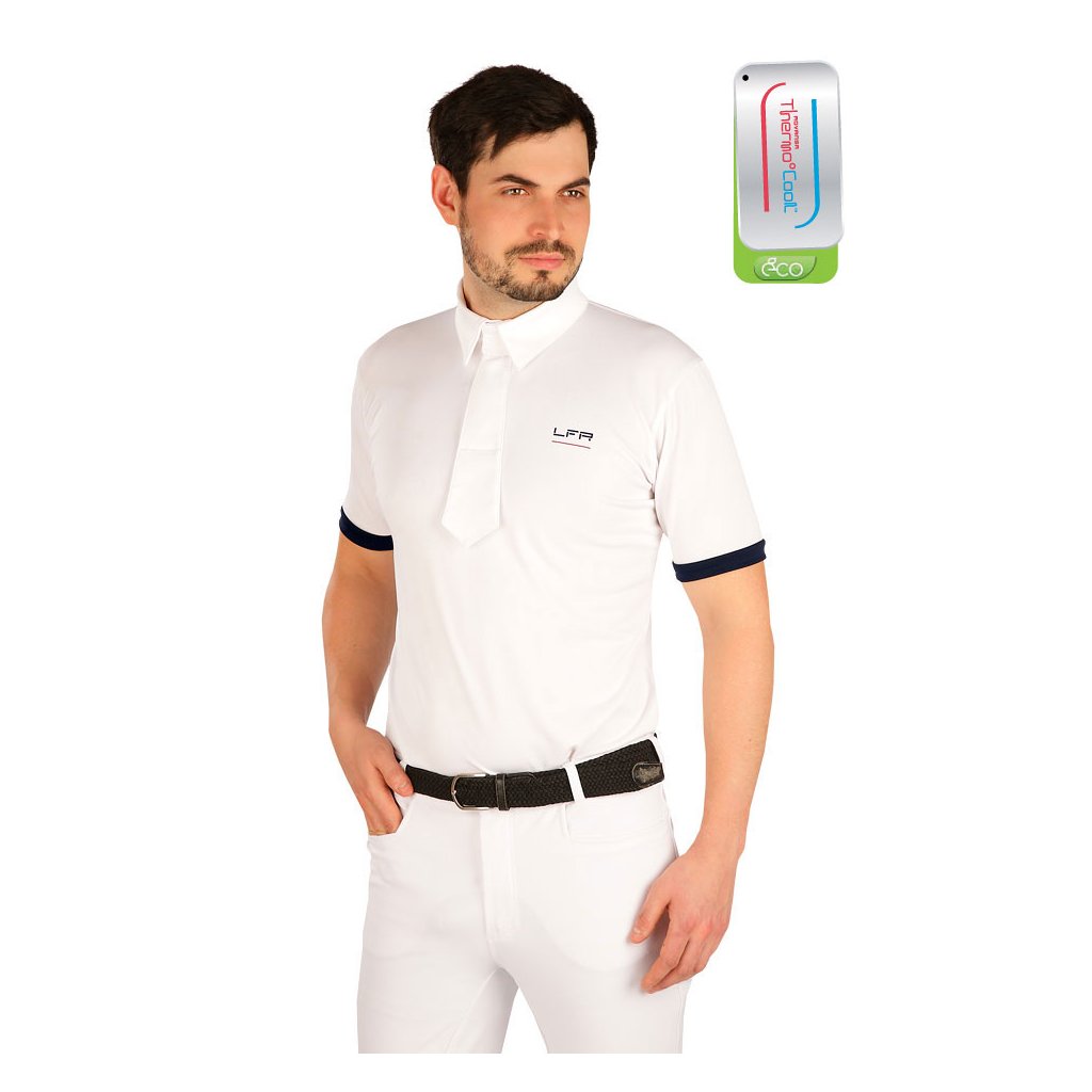 Krátké rukávy do manžety. Zapínání na knoflíky. Všitá kravata. Funkční materiál odvádí vlhkost a je velmi příjemný na těle. 92% Polyester Thermocool fresh + 8% Elastan/ Lycra 100 bílá + tmavě modráDoplňkové parametry