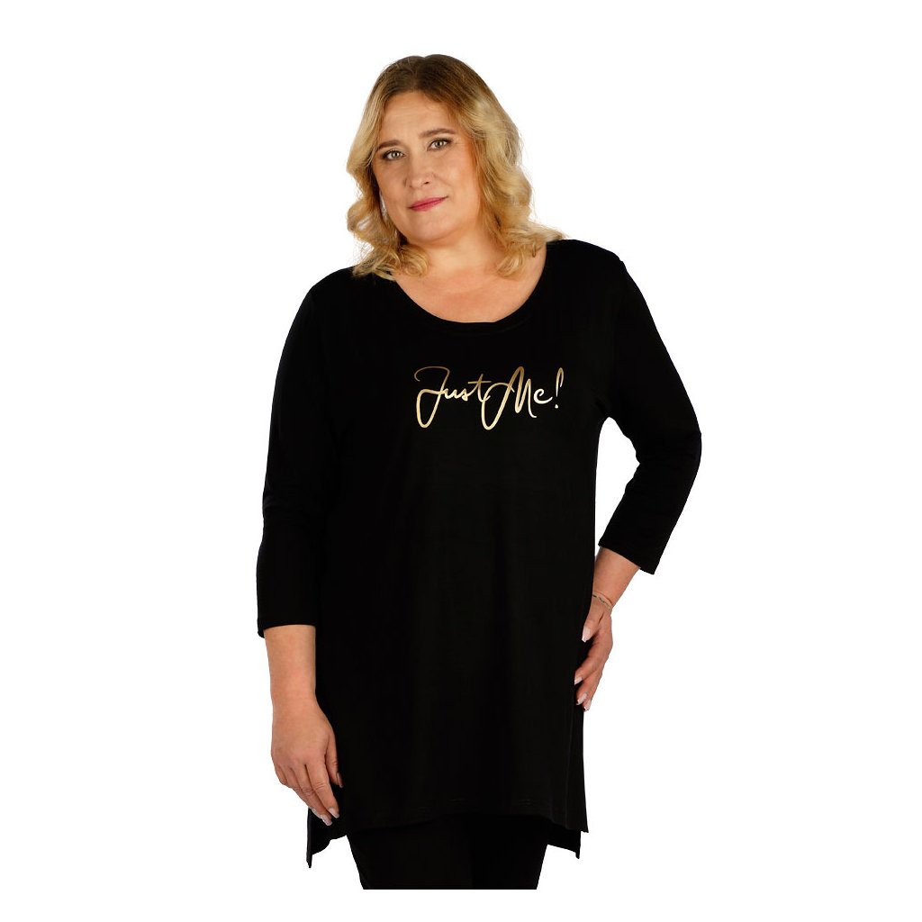 Kulatý výstřih a zlatý nápis na předním díle. Rozparky na bocích. Velmi kvalitní viskózový materiál s elastanem je příjemně měkký, pružný a při nošení velice komfortní. Tuniku nabízíme ve větších velikostech. Délka tuniky cca 85 cm. 95% Viskóza Sirospun + 5% Elastan/Lycra 901 černá XL, XXL, XXXLDoplňkové parametry